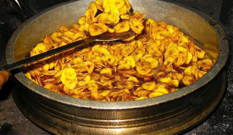 These golden crunchy wafers of unripe Banana are fried in the coconut oil. They are obtainable in two varieties; one is made from raw bananas and the other is made out of seasoned plantain. During my last trip to Kerala, I bought 2 packages of Banana chips from Trivandrum near Padmanabhaswamy temple. The taste and quality was awesome.